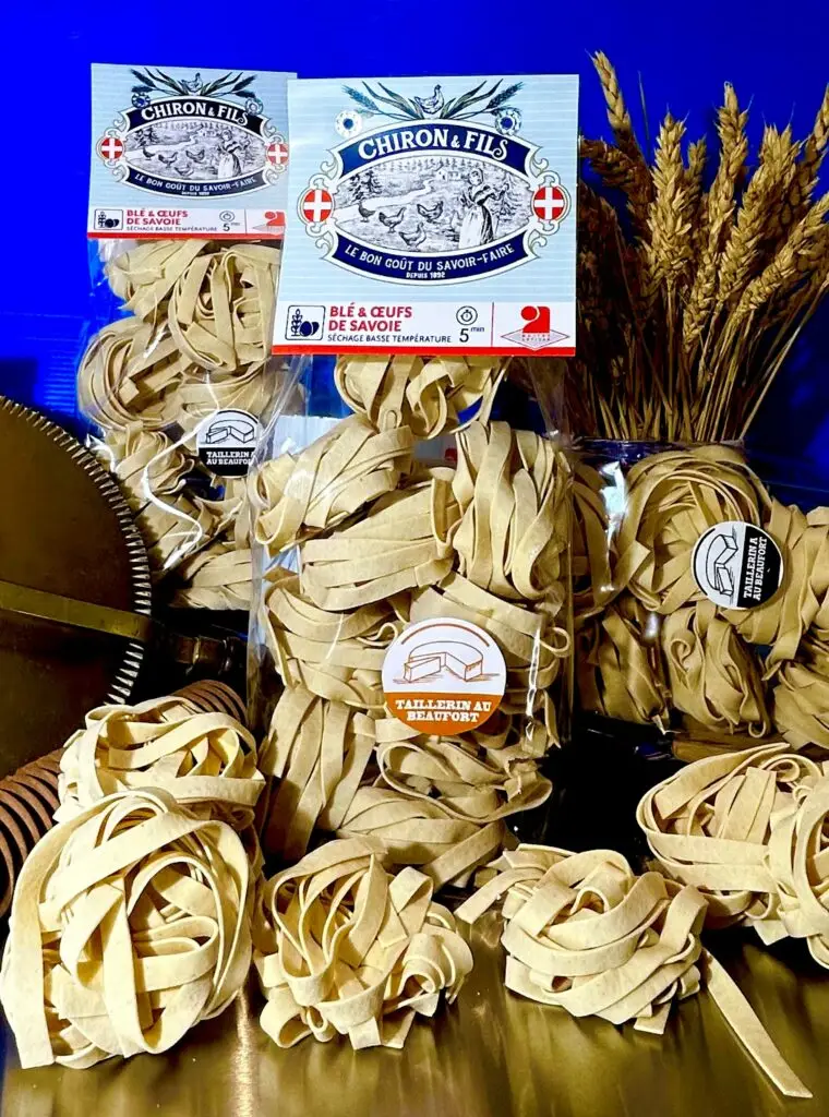 La Vermicellerie Chiron et fils perpétue cette tradition et propose une gamme de plusieurs références en forme de petits nids pour garder de la longueur et de la gourmandise à ces taillerins. Une gamme riche en goût pour régaler vos papilles : ail des ours, safran, cèpes et bolets, herbes de montagne, myrtilles et bien sûr nature aux œufs pout une dégustation « comme des pates fraiche ».